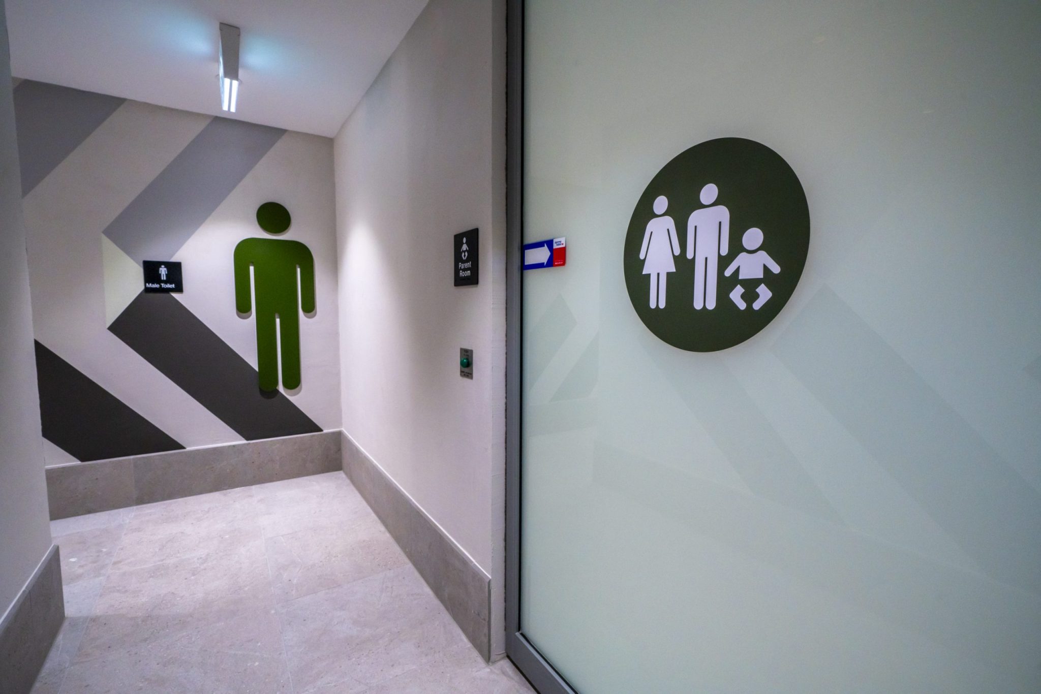Our team was tasked with refurbishing the space, upgrading the vanity area, creating a safe play area in the parents room, and improving accessibility for the disabled bathrooms.